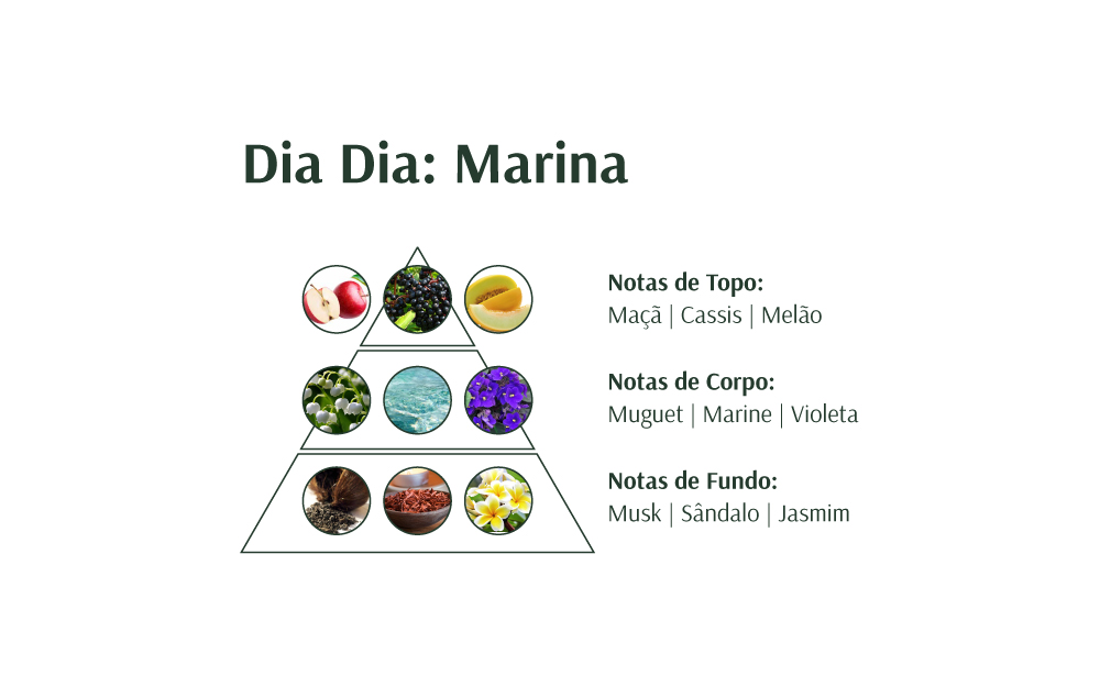 Na fragrância Marina, o Banho Refrescante Dia Dia irradia um perfume que remete às brisas marinhas.
