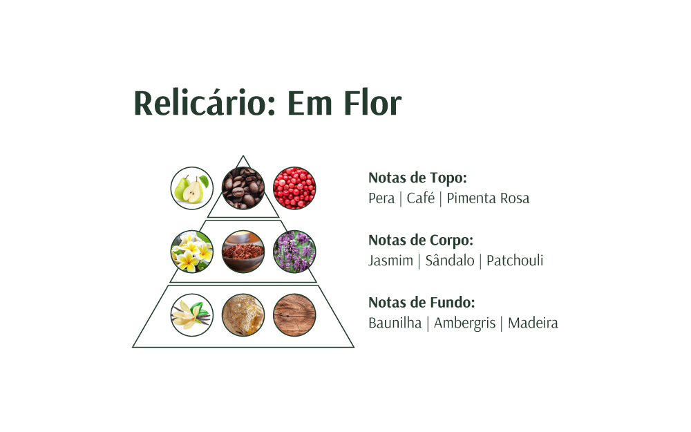 Da família amadeirada aromática, Em Flor é uma colônia clássica com fragrância revigorante, envolvente e com um toque de jovialidade.
