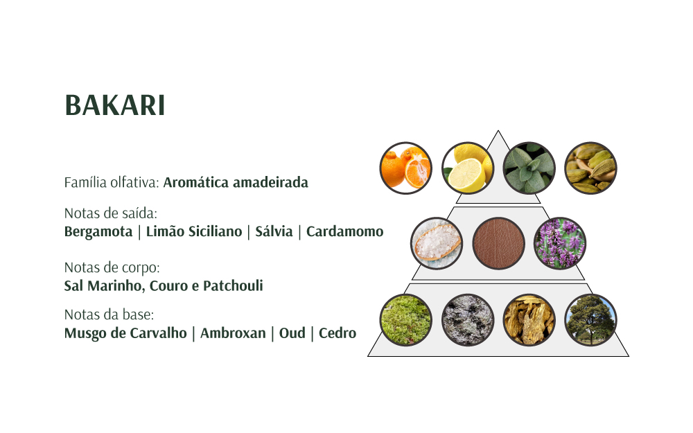Bakari é uma afirmação de identidade em forma de Deo Parfum. Criado para o homem que vive com propósito e caminha com a confiança de quem sabe onde quer chegar.