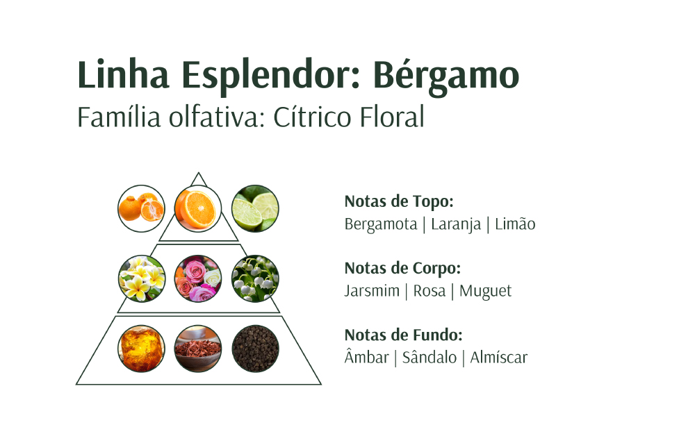 Com liberação gradual, mantém o espaço perfumado de forma suave e constante, revelando a delicadeza e a sofisticação de Bérgamo.