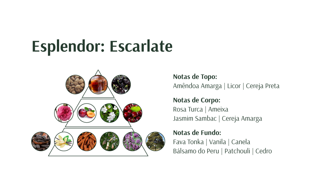 Composto pelo Difusor de Essências Escarlate 100ml, pela Vela Aromática Escarlate 50g e 8 Varetas, o kit é um presente completo e irresistível