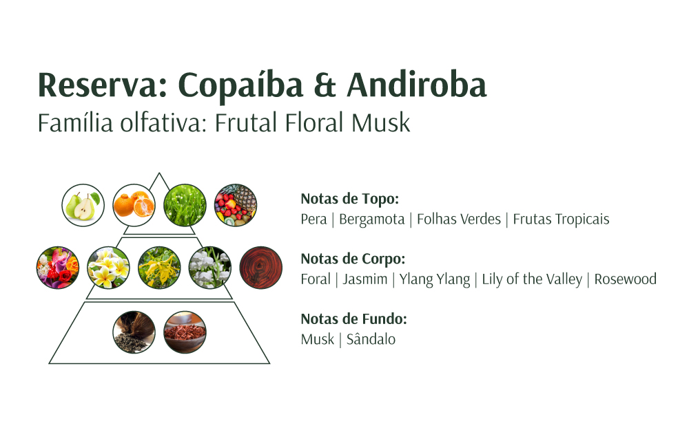 A sua fragrância frutal floral musk associa a sensação aromática da copaíba e andiroba para uma experiência de hidratação perfumada. Além do toque sedoso e macio, o resultado do uso do Óleo em Creme é uma pele regenerada e com uma película protetora de longa duração.