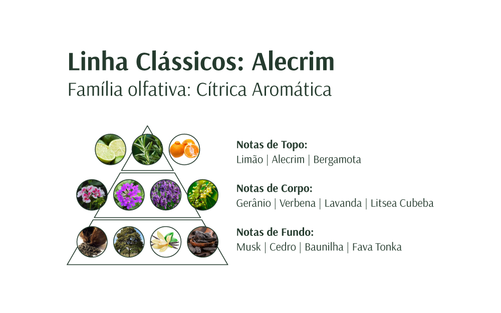 linha Clássicos apresenta fragrâncias de Perfumes para Interiores cuidadosamente selecionadas. São capazes de oferecer identidade ao ambiente, estimulam sensações de bem-estar e segurança, além de um toque de conforto, tranquilidade e sofisticação. Eles foram desenvolvidos para a aplicação em ambientes de todas as dimensões, com o auxílio de válvula dispersora. Possuem ação bactericida e durabilidade de 4 a 6 horas.