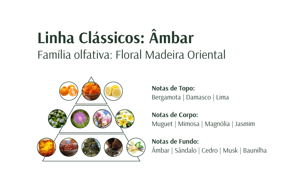Âmbar é uma fragrância floral amadeirada oriental que combina notas cítricas, florais e amadeiradas, oferecendo elegância e sofisticação ao ambiente.