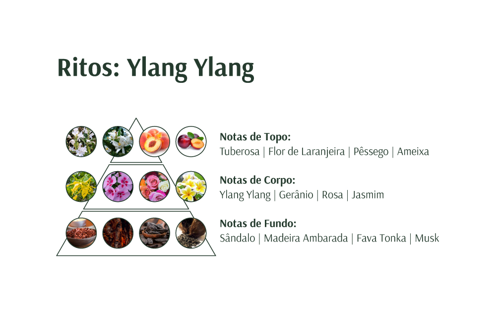 Ylang Ylang é uma expressão exótica e opulenta de feminilidade. Com notas de saída que combinam a doçura da tuberosa e flor de laranjeira com as nuances frutadas de pêssego e ameixa, essa fragrância captura a essência da sensualidade. No corpo, o ylang ylang, conhecido como a "flor das flores", se destaca junto ao gerânio, rosa e jasmim, criando um bouquet floral envolvente e sofisticado. As notas de fundo, com sândalo, madeira ambarada, fava tonka e musk, trazem um aconchego duradouro.