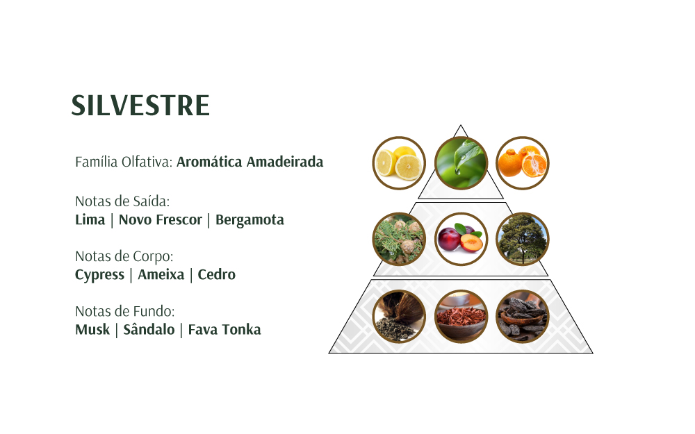 O Sabonete Líquido Silvestre limpa suavemente a pele enquanto perfuma com notas frescas e amadeiradas que despertam os sentidos.